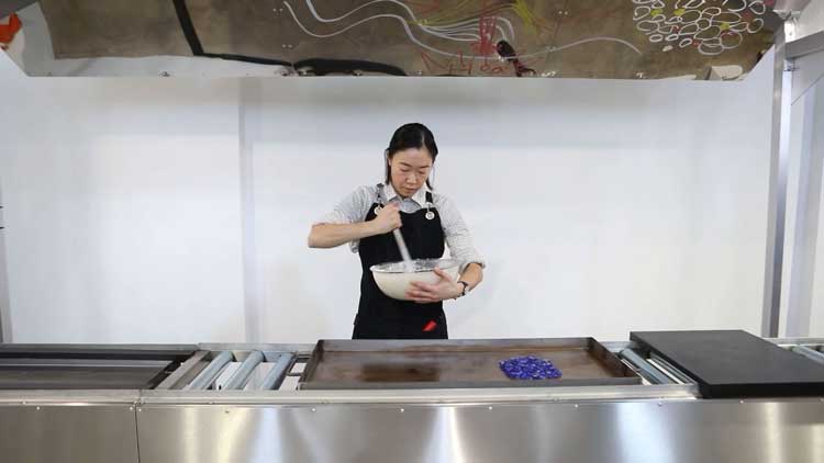 Aki Sasamoto, Grilled Diagrams, Performance, February 2026. Video still. Courtesy of the artist and Studio Voltaire. Video: Dor Even Chen.