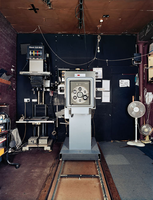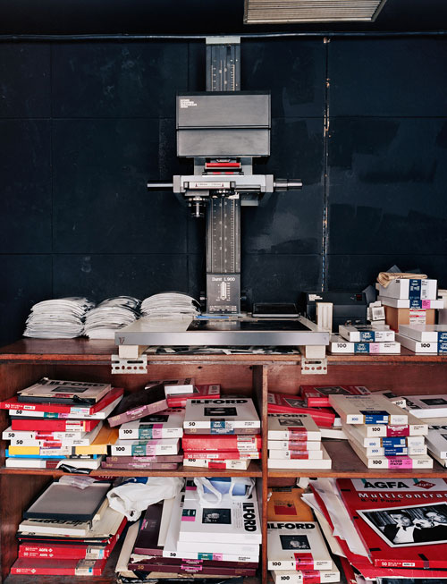 One can think of the equipment in this studio set-up as the audio equivalent of the work of Richard Nicholson. Nicholson presents a series of images of the darkroom. These images first and foremost act as documents for the steady demise of the darkroom but they also record these spaces as chaotic, often crammed full of photographic papers, and filters, and dog-eared stacks of photographs, and some miscellaneous objects, such as a ceramic shoe or a plastic figurine, and of enlargers of different sizes, with some mounted on tracks, and others perched precariously on shelves; and one notices the black paint peeling off the walls too. In some sense, the objects, the dolls, the boxes and the general disorderliness is a welcome antidote to the often-clinical surroundings of its digital counterpart. As in the case of the analogue sound, the so-called interference, the dust and scratches, has its visual equivalent in what might be called the clutter constituted by these objects.