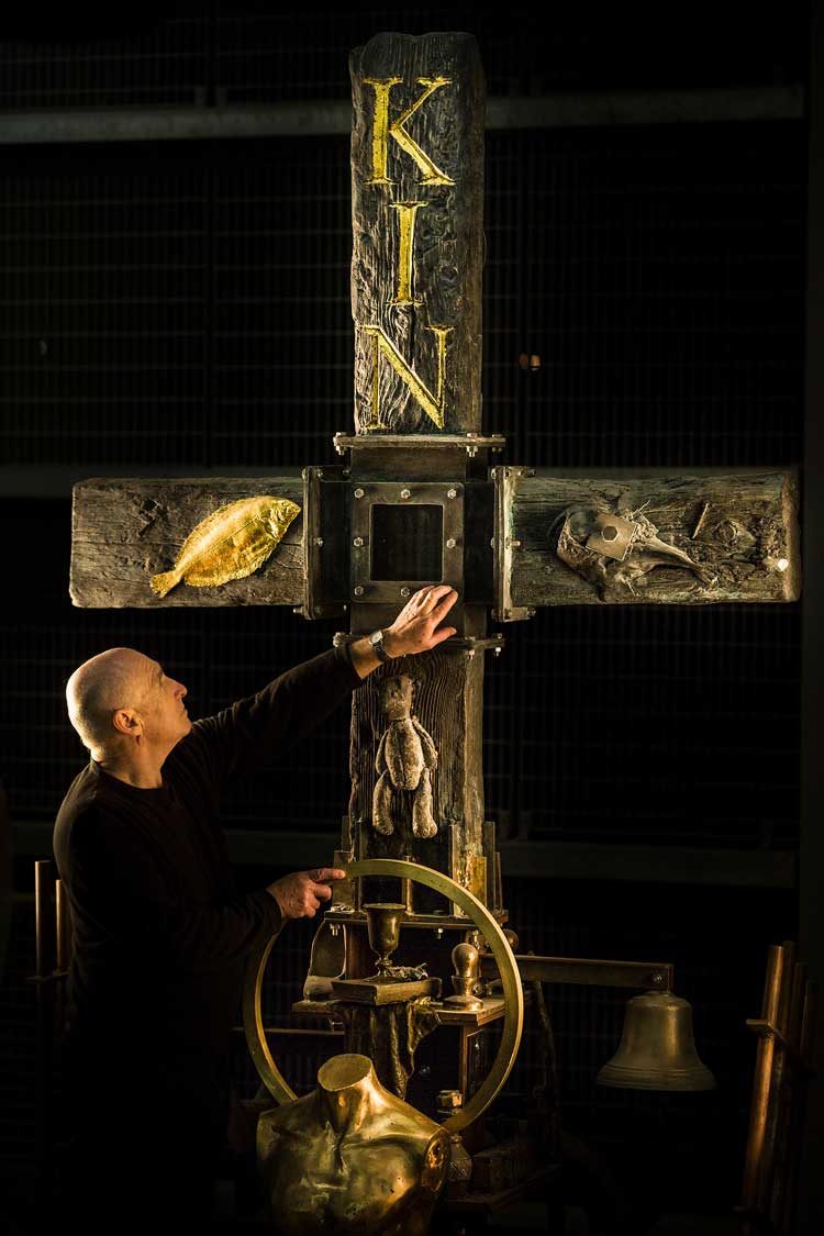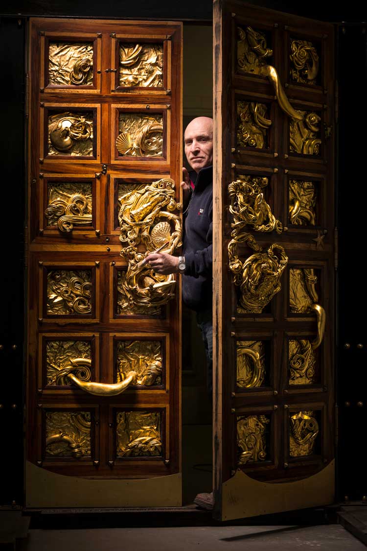 Initially, I decided to produce a freestanding doorway that would act as a liminal and transforming space. I had recently returned from Spain and became fascinated by both domestic and religious doorways, so I bought some bronze components that included hinges and studding. A little later, in the Boqueria market on the Ramblas in Barcelona, I came across a fish stall where there was such a density of fish stacked up, it almost felt as if they were a shoal swimming towards you.