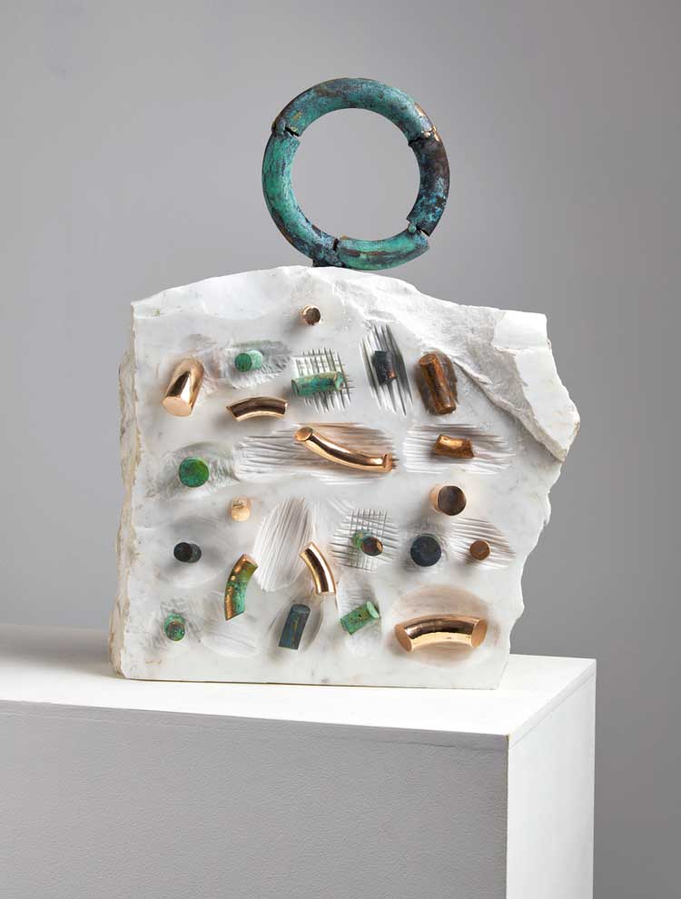Andrew Kinghorn, Shrine. Carrara marble and bronze, 65 x 45 x 15 cm. Photo: John McKenzie.