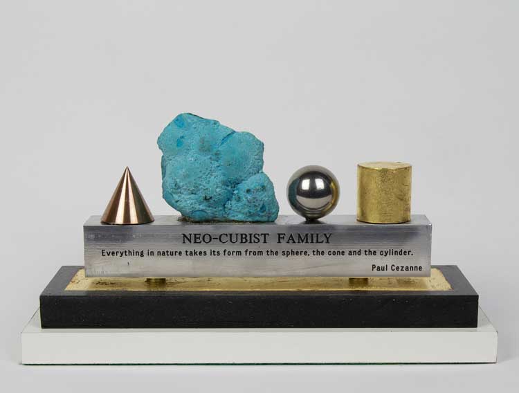 AK: Neo-Cubist Family was inspired by my friend Louise Brodie. Louise has three brothers but is the only girl in the family. I wanted to make a sculpture that was a small portrait that celebrated her uniqueness. The quote on the front of the sculpture is derived from Cézanne’s quote: “Everything in nature is formed upon the sphere, the cone and the cylinder.” It has always mystified me that the cubists venerated Cézanne so much, despite the fact that he omitted the cube, from his recipe of shapes.