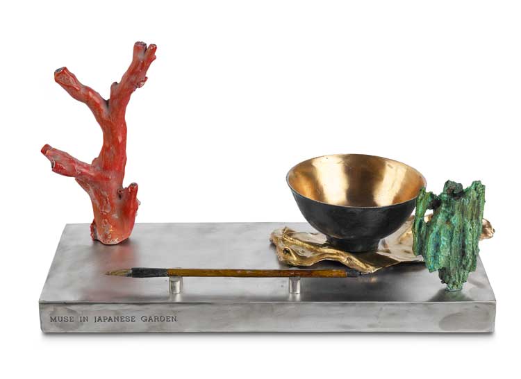Andrew Kinghorn, Muse in a Japanese Garden. Bronze, stainless steel, antique red coral, 22 x 45 x 18 cm. Photo: John McKenzie.
