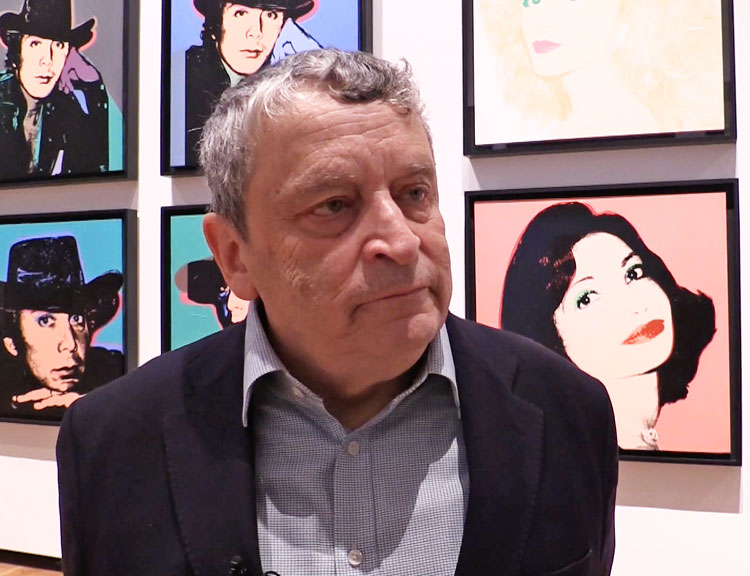 Norman Rosenthal talking to Studio International at the opening of Andy Warhol: Works from the Hall Collection, Ashmolean Museum, Oxford. Photo: Martin Kennedy.