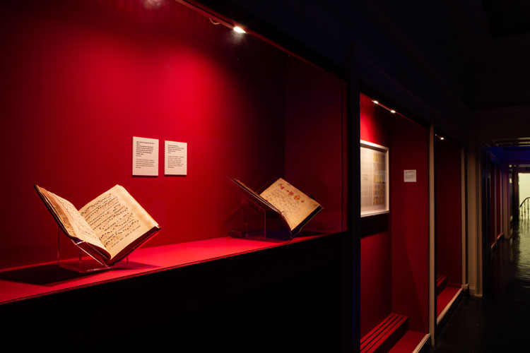 It is this sound that then accompanies us along the next upper balcony over the Georgian Gallery in which Assembly is being shown. All along that balcony are showcases presenting more fascinating items chosen from the university collection, of non-verbal notations and representations of music through its rituals, patterns and atmospheres, which resonate on so many levels with the drumming, dancing, harmonising and “assembling” that is going on at various points on the screens below.