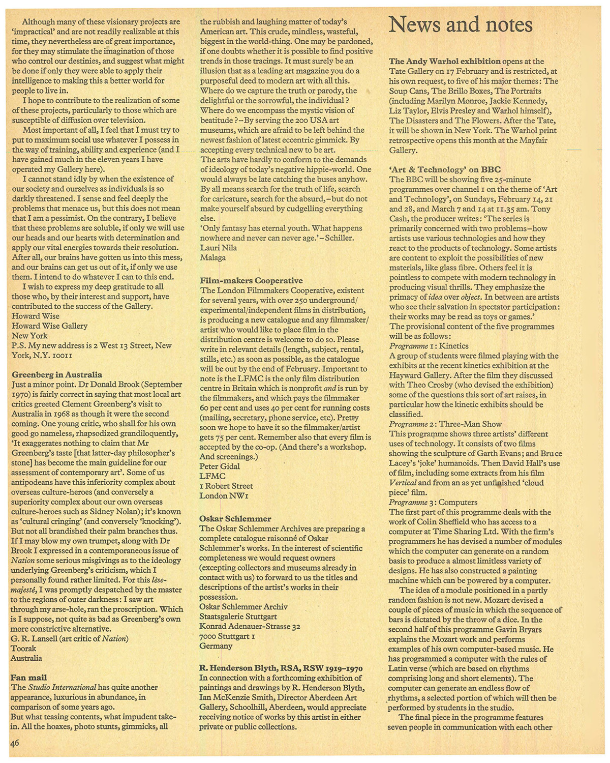 (This article was first published in Studio International, Vol 181, No 930, February 1971, pages 46-47.)