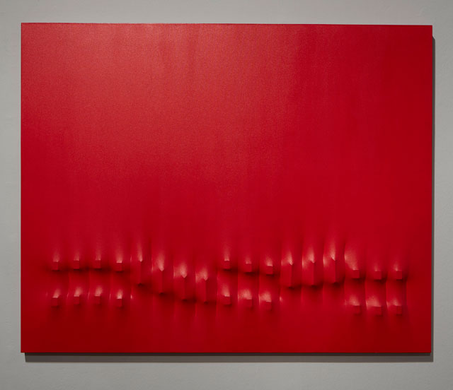 Agostino Bonalumi. Rosso (red), 1973. Shaped canvas and water enamel, 121 x 151 cm. Private collection. © ALTO//PIANO – Agostino Osio photography.