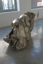 Wang Du is a Chinese artist who has lived and worked in Paris since 1990. This exhibition sees him continuing his critique of mass media, with large sculptures in white bronze of balled-up newspaper pages. In the gallery these are interspersed with model rockets, made out of rolled-up newspapers and stuck upright in resin, ready for launch. The bronze sculptures themselves are perfectly scaled-up versions of crumpled pages, with the newsprint engraved into the surface. Fragments of sense still remain: on 'International', you can pick out references to the West Bank and Iraq and the phrase 'missiles into'. On 'Culture & More', set in the gallery's small garden, the name of Marina Tsvetaeva is visible. Even more visually interesting are the scrambled lines of share prices that cover the whole surface of one of the 'Business' pieces. The symbolic crushing of the news seems to enact a sort of revenge or redressing, but these sculptures make another point too, one reinforced by the newspaper rockets: if you were to fling these hefty, waist-high pieces as you would a newspaper ball, you could inflict serious damage. The impact of the media made concrete. Wang's political satire seems to be heading in a more lyrical direction though, compared to his earlier cartoon-influenced sculptures in resin. The contours of the bronzes seem connected to the traditional use of distinctively shaped rocks in Chinese landscaping, an inheritance also drawn on by the artist, Zhan Wang, with his 'artificial rock' sculptures.