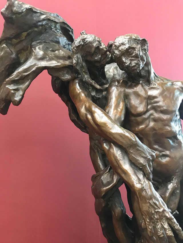 Because women in Claudel’s day were still not allowed at l’école des Beaux-Arts, she took lessons at the Académie Colarossi, a progressive – private – art school that placed a focus on sculpture, where she was taught by Boucher. When he moved to Florence in 1882, Rodin was hired to teach his class. Claudel, now 18, began working directly with Rodin, 42, often in his workshop. She modelled for him and learned from him, but the influence was not uni-directional, since works signed by Claudel also find their echoes in later pieces by her master.