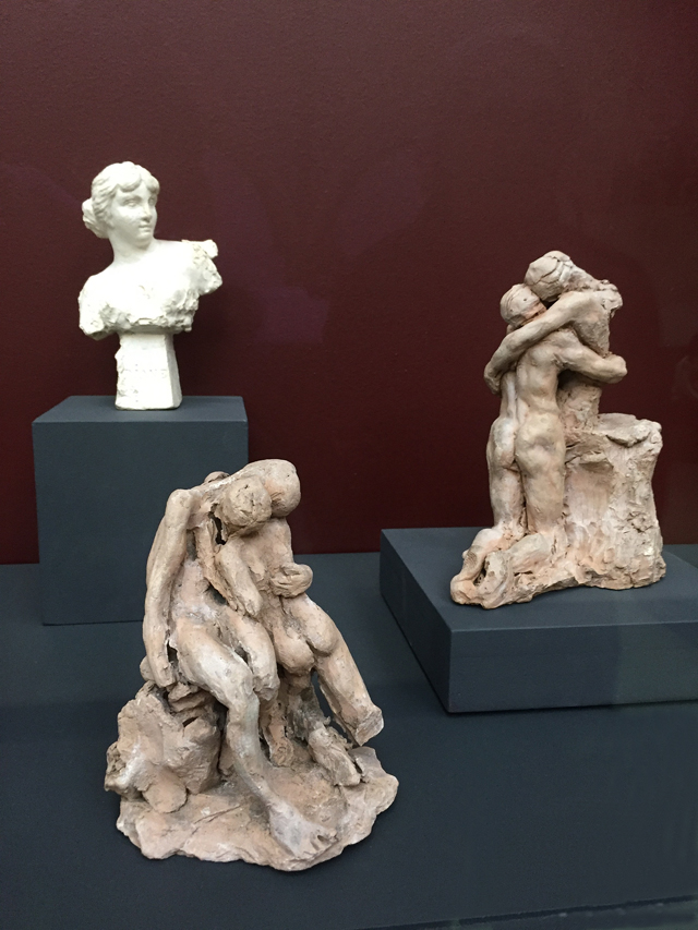Camille Claudel. Left: Sakountala, study, c1886. Terracotta 15.5(h) x 11.5(w) x 12.5(d) cm. Paris, Musée Rodin, © Artcurial / DR. Right: Study II for Shâkountalâ, c1886. Terracotta, 21.50(h) x 18.50(w) x 11(d) cm. Paris, Musée d'Orsay. Acquired on funds from an anonymous Canadian donation, © Artcurial / DR. Photograph: Anna McNay.