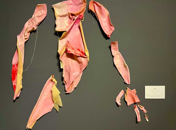 Materiality is important in the work of all four artists in Catalyst. Oleskiewicz creates hybrid “creatures” to assist in raising consciousness, and to assert the need to address crime against women. “Textiles, combined with welded metal and paint, convey impressions of bodily forms, relations between body, flesh, meat, pain, harm. Textiles feel meaningful to me as they are immediately associated with a body – also in our daily space. They cover us. That can evoke care, warmth, but also shame. I see textiles as holding a great potential of dramaturgy: left clothing feels empty, an absence of the person who wore it.” Oleskiewicz’s hope is to provoke questions, critical thinking, imagination; to create a gap within established narratives and open a space for alternative visions.