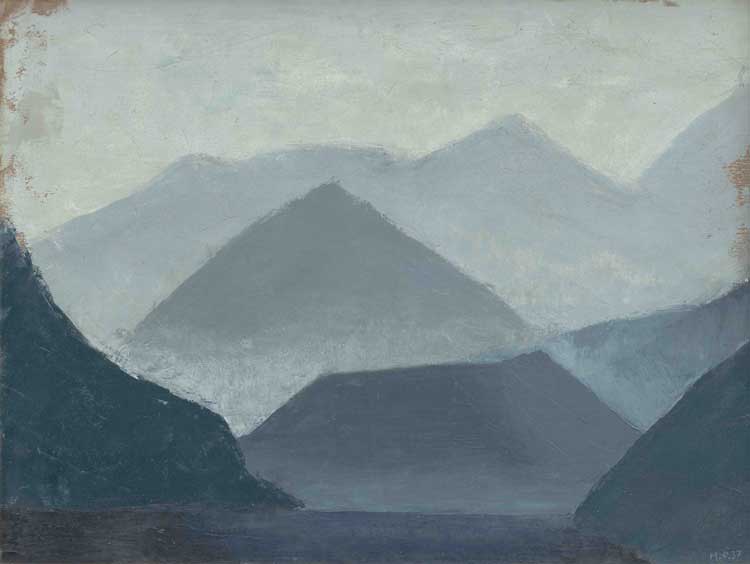 Meret Oppenheim, Mountains opposite Agnuzzo (Ticino), 1937. Oil on cardboard. Private collection.