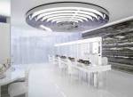 Designed by experimental Japanese architect duo Kazuyo Sejima and Ryue Nishizawa, known collectively as SANAA, the building is a pristine white box with sharp edges and occupies the entire trapezoidal site. Couture dress, the ultimate beauty in fashion, is the main source of inspiration for this new creation. Standing at 30 m tall, it seems to be like an eight-storey high building with a dramatic double-skin façade of transparent flat glass on the outside and softly curved, white translucent acrylic panels on the inside, reminiscent of the drape of a dress. White stripes are printed on the acrylic walls so that the building's appearance changes beautifully depending on the light during the day and the level of penetration of lighting at night. A few white horizontal aluminium bands further break the continuous volume into several unequal segments. This slender white box speaks of an elegant femininity that enables it to stand out effortlessly along the star-studded street. Not revealing entirely what is behind the white drapes, it exudes an air of mystery that invites one to step into the luxury world of Dior and explore.