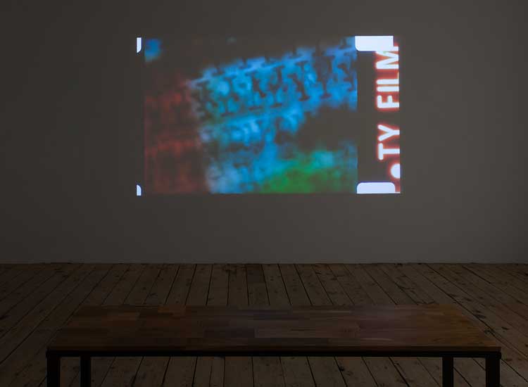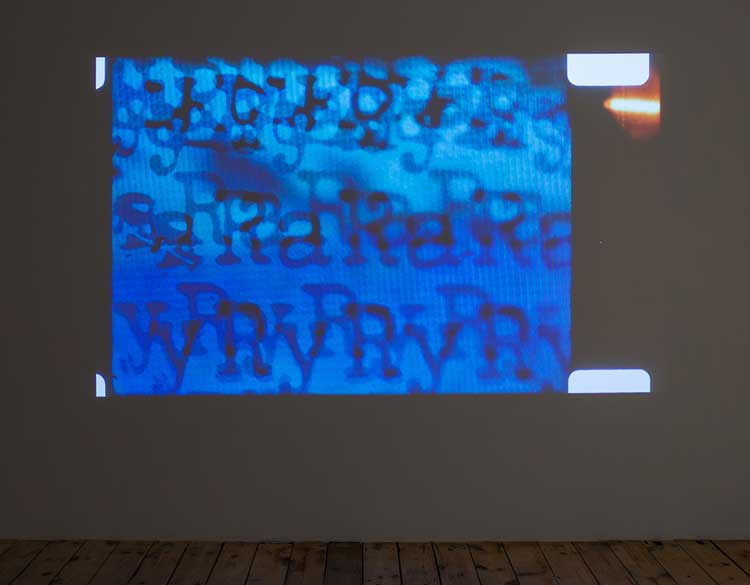 EE Vonna-Michell – Henri Chopin: To Ray the Rays. 16mm film transferred to video, sound, colour, 7 minutes 55 seconds. Installation view, TINA. Photo: Bronac Ferran.