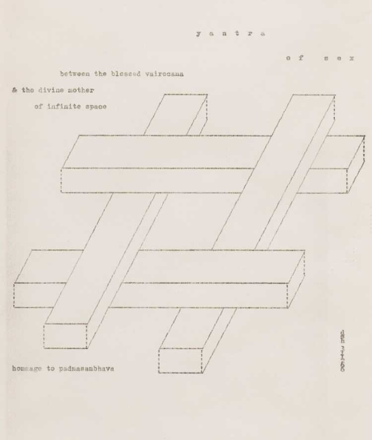 Dom Sylvester Houédard, yantra of sex, 1966. Typed page. Image courtesy of Lisson Gallery.