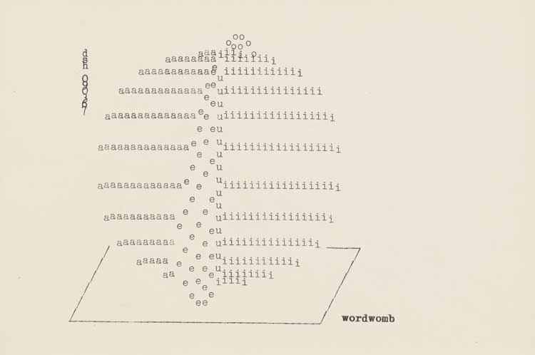 Dom Sylvester Houédard, wordwomb, 1967. Typed page, 16.3 x 20.2 cm (6 3/8 x 8 in). Image courtesy of Lisson Gallery.