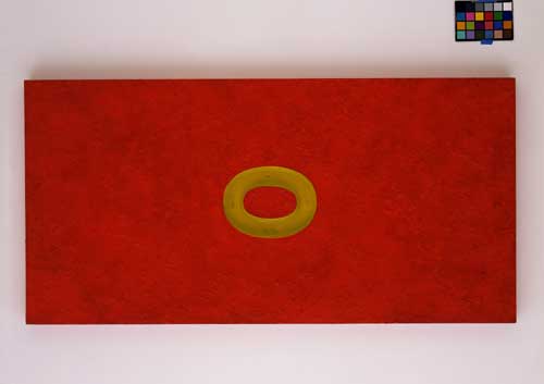 Donald Judd was born and raised in the Midwest. He joined the army after high school, knowing that he would in due course qualify for an educational grant. In 1953 he graduated from Columbia in Philosophy; he had also studied at the Art Students' league in Manhattan. He completed a Masters degree in 1962. In 1959 Judd began publishing art criticism in Arts magazine (then edited by Hilton Kramer) and became a regular contributor. By the late 1950s Judd was quite disillusioned with painting and began to experiment. He produced in 1961 a work that with hindsight was an important point in his development. 'Relief' 1961 was made with asphaltum and gesso on composition board, mounted on wood with an aluminium baking tray inserted in a sunken central point. Real space and the abstract surface were explored, 'The empty pan reads as a mocking declaration of the art object's contentlessness'.12