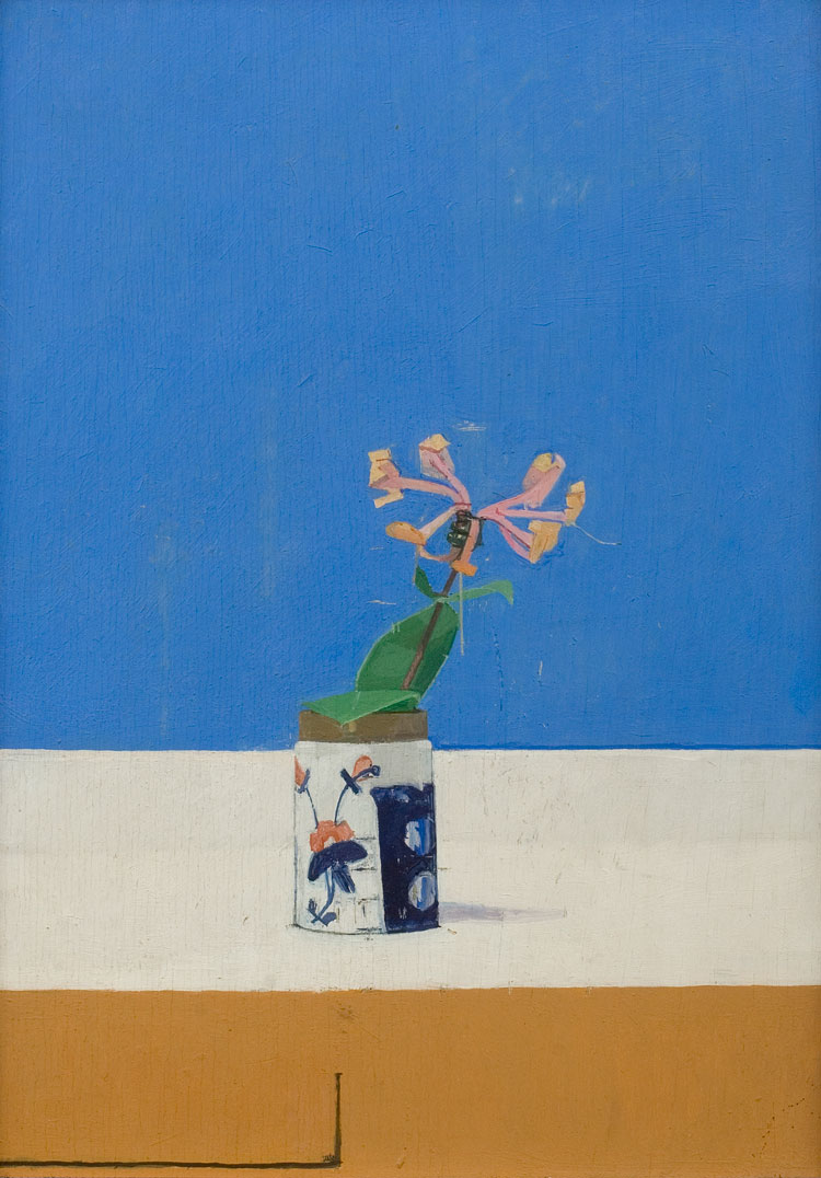 Euan Uglow, Still Life with Honeysuckle, 1968. Oil on panel. Image courtesy Piano Nobile, London. © The estate of Euan Uglow. All rights reserved 2025 / Bridgeman Images.