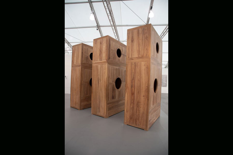 This year, SP-Arte was forced to evolve from previous editions due to the new competition of RioArt, Rio de Janeiro’s Art Fair. The situation of a circuit in expansion may attract foreign investors, galleries, artists, as much as an emergent Brazil does attract attention nowadays. It may not be coincidence the first image from Miguel’s pictures of Frieze NY is of a work by Brazilian artist Ernesto Neto. Being a modular work as much as Judd’s work is a coincidence though.