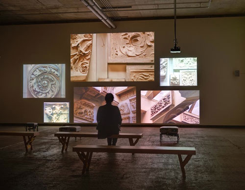 Tan captures some intriguing closeups of the curious expressions on crumbling stone faces and fish-eyed reflections in convex mirrors using a variation of formats (super 8, 16 and 35mm film, and analogue, digital and high-definition video), which are projected on to an uneven grid of irregularly sized frames. As the titled suggests, Tan flattens Soane’s collection into a digital index archived for future generations, where the intense aura of the physical space doesn’t translate. Through the lens, the historic objects appear like tacky props in a low-budget film. Like the things lying useless in Fukushima homes, these objects are idle shells with their uses no longer valid. The sound is the only trope that adds a layer of intensity to this piece, a fading classical strings composition that gathers momentum, becoming richer and stronger, and then stops. Unlike the earlier documentary-style pieces, which create intensely emotional feelings of loss and abandonment, this work is cool and detached, presented like a contemplative visual essay meditating on the human need to acquire and collect, almost as a compulsion.