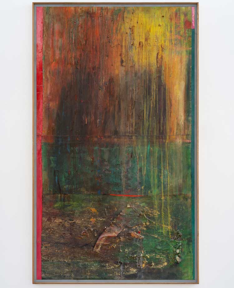 Frank Bowling, Sentinel, 1976. Acrylic on canvas, 173.2 x 71.2 cm. Courtesy the artist. Photo: Anna Arca. © Frank Bowling. All rights reserved, DACS 2025.