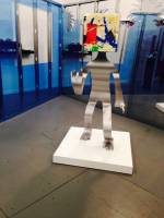 Given the ease with which the eye-catching pieces flew off the walls, the formula held. Work perceived as trending that sold out the first day included pop comments on Pop (Sylvie Fleury’s life-size crushed car that she painted with pink nail polish and posed against a wall caked with makeup; impeccable fabrication (Anish Kapoor’s shiny discs that danced down every aisle); mannequin sculptures (Chicago imagist Karl Wirsum’s robotic stick figures); body fetish (Guillaume Leblon’s truncated ceramic legs and Jonathan Monk’s kicking ones, Naotaka Hiro’s body casts of himself made with his right hand).
