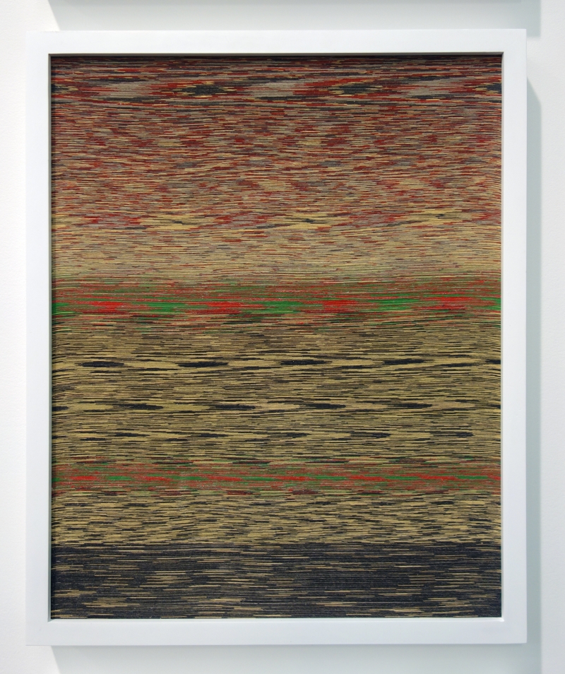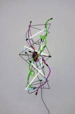 Brock Enright’s installations at the Kate Werble Gallery booth was another memorable work that questioned our sense of boundaries and the status quo in a probing but subtle manner. It consisted of a sprawling display of objects, including transparent miniature containers, small twigs, winding snakes of varying shapes and sizes and tiny columns resembling cat scratching-poles – all placed on small pedestals resembling coasters on the floor in a form of a rectangle, occupying most of the available walking space in the gallery. This odd installation of fragile and transparent objects contrasted sharply with the clamour of the fair’s abundance and offered a refuge from it. Sparsely composed paintings by Michael Berryhill hung alongside Enright’s installation echoed its carefully organised randomness, contributing to a poignant sense of missing something essential. A similar feeling of disruption, but much more emotionally charged, was occasioned by watching a captivating video, Fight (2001), by Polish artist Zuzanna Janin. The video captures an excruciatingly brutal and seemingly endless fight between a man and a woman in a boxing ring. We find ourselves drawn viscerally to the reality of aggression emanating from the screen yet repulsed by its utter senselessness and sadistic undercurrents.