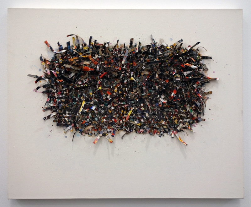 It was not an easy task, although not entirely hopeless. Of course, there were many thematic and visual references to poverty and exclusion that were framed by the discourse of art history – as in a metal construction by Jannis Kounellis [who died in February this year] that combines a hard-edged steel-cast minimalist frame with multicoloured rags of Arte Poveraat White Cube, for example;or in a an arresting display of Sadie Benning’s “drawings” made of wood, Aqua-Resin, casein and acrylic gouache with motifs reminiscent of African textilesat Susanne Vielmetter Los Angeles Projects; or works about otherness framed by the formerly excluded, or on their behalf – as in a display from the Goodman Gallery in Johannesburg, South Africa; or Andres Serrano’s unforgettable photographs of notable figures in American pop culture, such as his portrait of Snoop Dogg (America) (2002) placed next to that of Donald Trump, on view at Galerie Nathalie Obadia. Otherness as a gap, however – as something that was not appropriated as a symbol, but that could be sensed only obliquely as an oddity and a strange discomfort that we are reluctant to face – existed only in a handful of works, some of them installations that included at least two objects and some digital media work. Foremost among them was Anish Kapoor’s Void, a large hollow semi-sphere made of fibreglass and painted in a deep shade of velvety red in combination with his Mirror Glow (Oriental Blue), a concave mirror made of stainless steel and positioned across Void on the opposite wall in such a way that a viewer looking in the mirror could notice the other work’s reflection, while not seeing their own. The resulting sense of displacement and loss of one’s body is uncanny, to say the least. Were it not for the surrounding crowd, the disorientation and unease arising from not seeing one’s reflection in the mirror and, instead, facing the literal and metaphoric void would be viscerally unsettling.