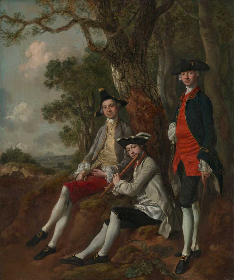 Gainsborough, too, offers reassurance – although, possibly, with a sly dash of resistance to entrenched social hierarchies. For the most part, though, his glamorised vision of mid-18th century England is devoid of the intrusive realities lurking outside the charmed circle of the affluent elites he served, the revolt of the American colonies yet to occur, the inhumanity of the slave trade that underpinned the fortune of many of his sitters swept under their expensive carpets, and the rumblings of what would erupt as the French Revolution barely audible – reckonings that were still decades in the future. The lushly green and pleasant land that characteristically appears in his paintings reminds us that Gainsborough preferred landscape to portraiture (famously stating he was “sick of portraits”.)