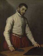 Moroni’s imaginative apprehension of his sitter’s gaze is at its most charged in the measured, and measuring, Portrait of a Tailor. While not strictly speaking the first portrait of a tailor, a precedent set by Girolamo Bedoli, Moroni’s portrait nonetheless endows the depiction of a craftsman with unparalleled distinction. The portrayal also brings to mind the complaint of the theorist Gian Paolo Lomazzo (1538-1600) that because subjects of portraiture were no longer limited to the highest ranks of society, it was impossible to identify the subject of a painting given that merchants dressed like aristocrats and emperors like peasants. The tailor’s modishly slashed red breeches, fitted jacket and ruffed white shirt hardly seem modest and although contemporary prints illustrating the profession confirm this form of dress, it has also been hypothesised that the subject might be a textile merchant rather than a tailor. This image distils the inherent tension in portraiture, at once an exterior materialisation of the sitter’s mind, a conduit to the outside world showing every quiver of the subject’s moti mentali, but ultimately enigmatic, unknowable, as perhaps all portraits and faces are.