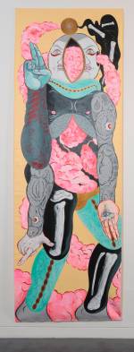There is, of course, a long lineage of comic books influencing fine art; indeed, in Edinburgh’s National Gallery, Roy Lichtenstein’s famous paintings of comic book strips are on show now, too. Katsumata, however, seems to be more boldly involved in the world of imagination that comic books capture and invite audiences into; his work is inspired by that sort of imaginative quality rather than a wry statement on melodrama or pop culture. That head-first attitude to the subject matter may concern some, may suggest that it is not art, for that absence of obvious cynicism. Such an assumption would be a mistake, however; while rampant imagination and engagement with pop culture may not be fashionable when it is not tempered by distant criticism (such as Andy Warhol’s or Damien Hirst’s), the surrealism of Katsumata seems to signal that a change may be in order on that front. His expressive and stylish work creates a world that is mesmerising and fascinating; in so doing, it provokes thought in a refreshing, new way, in which the audience need not decipher every vague statement, but explore a whole world of surrealism.