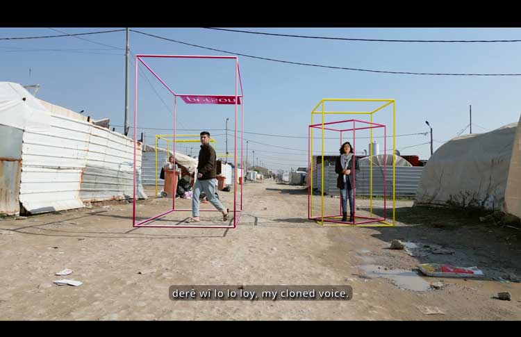 Hito Steyerl, Mechanical Kurds, 2025. Video installation. Courtesy of Hito Steyerl, Andrew Kreps Gallery, New York, Esther Schipper, Berlin / Paris / Seoul. © Hito Steyerl. Video stills: © Hito Steyerl, VG Bild-Kunst, Bonn 2025.