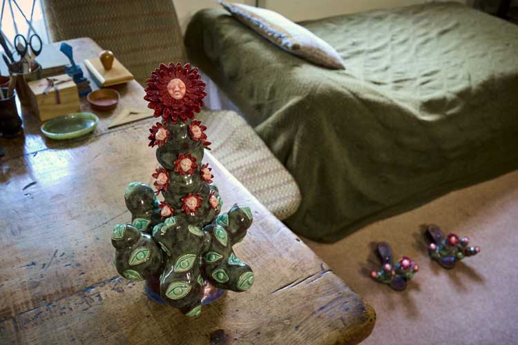 Clay allows a process that’s very nurturing. It goes through all these stages. First, it’s mud and wet and skin. Then it dries out, and you have to tend to it, so it doesn’t crack. You have to look after it. You almost have to feed and nurture it. Then it’s bisque fired, and it comes out white and dead and ghostly. Then you have to paint it. I see my glazing as a bit like painting. So, it’s glazed and rearticulated, and then it’s sealed and signed and sent off. It’s done. But it’s a long process.