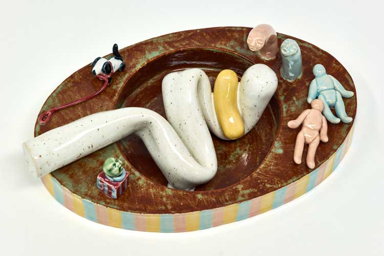 Holly Stevenson, Sibling Displacement, 2025. Ceramic: glazed stoneware: Unique work from the series Sigmund Freud’s Ashtray.