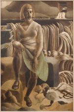 Known primarily as an occultist, Colquhoun started her artistic career as a student at Cheltenham School of Arts and Crafts before moving to London to study at the Slade School of Fine Art in the late 1920s. Although her early work included many classical and biblical subjects, including Susanna and the Elders, Judith Showing the Head of Holofernes (both 1929) and Adam and Eve (c1930), even then, her interest in occultism and spirituality was present. In Judith Showing the Head of Holofernes, for instance, Judith holds Holofernes’s head high in the air while onlookers seem to move, or dance, around a fire, reminiscent of a ritualistic ceremony.