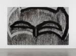 The blank stare of a giant Homer Simpson; a gurning Mickey Mouse; a half-erased Batman cowl: this is the vocabulary of Joyce Pensato (b1941), the born-and-bred Brooklyn artist who for the past 30 years has been creating eerie and explosive large-scale portraits of cartoon characters and cultural icons, marrying pop art sensibilities with abstract expressionist-inspired execution. FORGETTABOUT IT, her second exhibition at the Lisson Gallery, is exclusively made up of Pensato’s 2017 output, revealing an artist still working intensively and experimenting with subtle shifts in her well-established style.