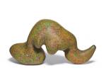 The show to cleanse the palate is the shining retrospective of Price at the Metropolitan Museum, partly for its teaching moment of how to create a world of weird and bring your audience with you through a mastery of form and surface; partly for the seamless transition from craft to art achieved with clay wrestled into avatars of the half-conscious; but, above all, for its uncanny beauty. The only obvious relationship of the early work – teacups skewed into small structures by contrasting colours and geometrics – to the bulbous, smooth-skinned bioforms of the later years is their complex ambiguity. (To the question: are they craft or art, Price once famously answered, “Yes”). The obvious geometry of teacup is vessel, handle and the accessory round saucer, whereas a Price cup is an invitation to play with planes and angles, much like the exercise for a Frank Gehry building, which gives the frame that Gehry has designed for the show’s grand finale piece a poignant significance. The evident smoothness and solid colour of Price’s later bioforms is belied on close inspection by a skin built with up to 70 layers of acrylic paint, which is then pocked, cragged and resurfaced with cotton buds and deep sanding to allow the latent colours to glimmer through. Even the trophy piece commanding Gehry’s intervention, a giant charcoal slug curled back on its swollen self, broadcasts such an essence of dark greyness as to irradiate the space built for it.
