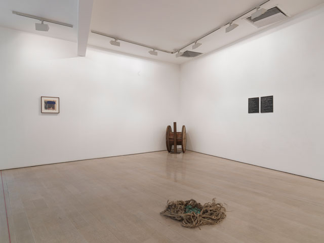 Boxes and closed spaces appear to be a running theme in Nogueira’s practice, or at least in the selected works at Annely Juda. Both Residue (1991) and Store (1992) are sealed wooden boxes, their contents (if they hold anything) hidden from the audience. Sometimes, Nogueira suggests the contents of these closed spaces, although her ideas of what these spaces might hold is tauntingly ambivalent. Like the wooden cabinet of Without This, Without That (1993), which has a metal chain and rubber plug leaking from its door. Or Monosyllable (1993), which is composed of two boxes, one open and the other with its lid slightly ajar showing hair bunched inside it. Then there is Cupboard (1996), which has no surprises – a small black cupboard with open doors, showing an empty interior.