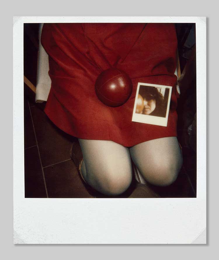 The Borgesian conceit of codifying a labyrinth within a tiny space – which in Borges’s case was the short story or fictive essay – resonates especially in Ghirri’s inclusion of leading clues or images within the fragments. Consider Formigine (Mo) (1983): the lap of a woman in a red minidress on which rests a matching red ball, while beside it is another Polaroid depicting possibly the same woman holding possibly the same ball in front of her face, one eye peeking out. The erotic interplay of hide and seek is reminiscent of Velázquez’s Rokeby Venus (1647), whose gaze reflected in a depicted mirror similarly ambushes us. But in Ghirri’s Polaroid the woman is clothed, and the layers of clarity and obscurity multiply at every turn: the unnamed woman could be also looking at the photographer from beyond the frame. And the inserted Polaroid is from another moment, maybe immediately before, maybe earlier (its overexposure suggests it was taken in daylight, whereas the more immediate photograph’s flash-induced chiaroscuro feels nocturnal), and there is no guarantee it is the same woman whose face is still, nonetheless, partially obscured. The synergy of clues is as neat as it is volatile; the enigma of photography is at once reinforced and dismantled, and reinforced in its dismantlement.