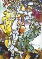 Although music and entertainment seems to have become increasingly important in Chagall’s postwar life, due attention should also be given to the work he produced after he settled in the south of France with his second wife Valentina Brodsky in 1948. Here we observe a renewal of his interest in colours, light, flowers, which are filled with allegorical meaning and appear above the bright skies of the utterly captivating Saint-Paul de Vence, where Chagall died in 1985. Couple above Saint-Paul (1968) serves as an excellent example of what seemed for Chagall the start of a new chapter.