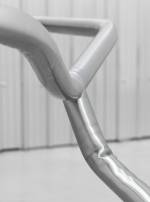 Waiting #1 (2017) is a rail, such as one that might organise a queue, but it is dented, as if damaged by collision. Waiting is the ultimate devotion, especially if you don’t know what you are waiting for, and you are not allowed to ask questions. Attached to the rail is a pair of handcuffs lying on the floor, which the stern security guard fastidiously rearranges into the perfect position: these handcuffs, in this way only. They are not to be understood as empty of a captive, but rather as a marker on the rail – somewhere between a certain colour of handkerchief attached to your jeans to signal the direction of your desire and the studded collar naming your humiliated status.