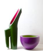 Presenting plant forms – flowers in particular – vessels always enabled nature to be offered in every season and thus they became essential to the expression of faith in the existence of a Divine Order. The act of giving implied by vessels in historic contexts is both questioned and also stripped of sacred implications by Rena, who insists the mnemonic form itself is the limit of the vessel’s ability: what it gives is the colour itself. Uncompromising in their minimalism and intense colour each piece or set of paired pieces succeeds in demanding the viewer’s attention. Now six new works have been made for his exhibition The Harmony of the Year at the Lynne Strover Gallery, June 2013, in Cambridge, the approach of mid summer when nature is at its most prolific. This year following a late spring there are plants and flowers that normally just overlap, blooming simultaneously and thus providing the artist with serious competition.