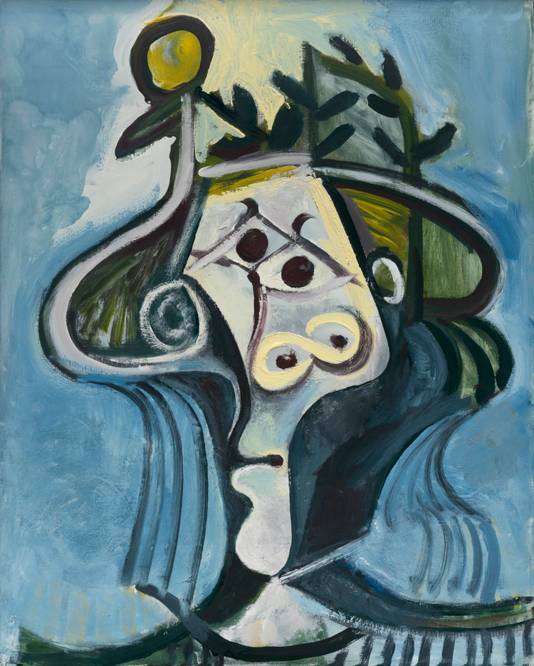 Pablo Picasso, Tête de femme au chapeau (Head of a Woman with a Hat), Mougins, 7 July 1971. Fundación Almine y Bernard Ruiz-Picasso, Madrid. © FABA Photo : Hugard & Vanoverschelde. © Succession Pablo Picasso / BONO, Oslo 2025.