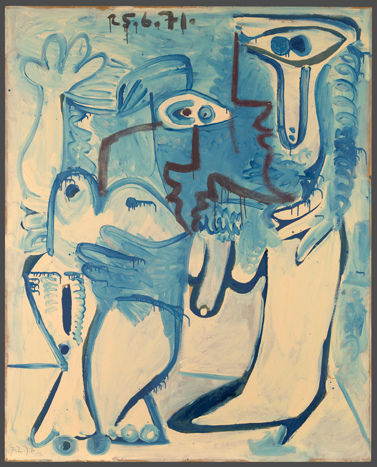 Pablo Picasso, Femme à l´oiseau (Woman with Bird), Mougins, 7 April 1971 (I). Fundación Almine y Bernard Ruiz-Picasso, Madrid. © FABA Photo : Marc Domage. © Succession Pablo Picasso / BONO, Oslo 2025.