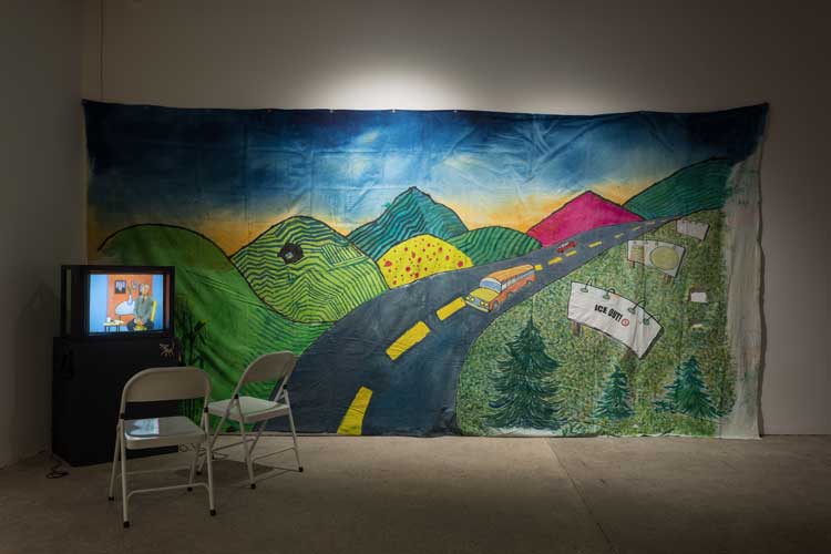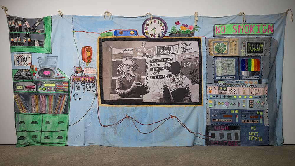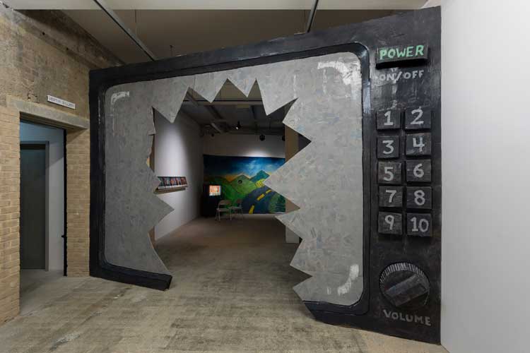 A new exhibition at Goldsmiths CCA showcases 40 of the nearly 400 films that PTTV produced from 1981 to 2008. Entered through an installation in the form of a giant shattered TV screen by artist Mark Couzens, it mixes screening monitors with ephemera from the project’s lo-fi productions. They are lo-fi in the truest sense of the term. The first film, Herb Schiller Reads the New York Times (1981), sees the late media theorist sit in front of a crudely painted backdrop and deliver a lecture straight to camera about the newspaper’s power to set the agenda on the behalf of hegemonic corporate interests. These interests are explained through diagrams on pieces of card, held up to the camera by a gloved hand. Schiller’s monologue is broken only by an interlude of photographs soundtracked by Joe Jackson’s new wave song Sunday Papers.