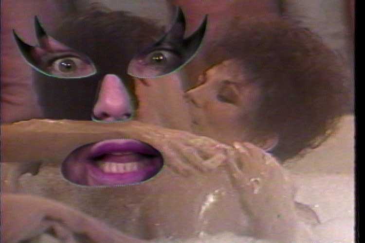 PTTV’s best videos function as complete works of art. Martha Rosler Reads Vogue (1982) sees the artist comb back and forth through an issue of the fashion magazine while unleashing a mellifluously paratactic monologue. Her critique slides suddenly into a fictional first-person account of an affair with its proprietor, Condé Nast, her fingers grasping the page with an increased firmness as she describes a non-consensual sex act. Another superb outlier, Joan Does Dynasty (1986), in which the artist Joan Braderman offers a critique of the 1980s soap opera, is a case in point. Braderman imposes her face and body on to salacious clips from the show. She variously hovers at the side like a gargoyle, lies down with her feet to the camera and stands front and centre. She sometimes opens her cardigan to reveal an invisible chest, through which images from the sitcom can be seen: at one point, the eyes of a hunk shine through her stomach. Braderman has an admirable turn of phrase – Joan Collins’s Alexis Colby is “a designer castrating machine” in a cast of “dressed-to-kill aliens” – but never lets her verve dilute her analysis of the show’s consumerism and anti-feminism. Sometimes minute Dynasty snipers are repeated again and again, as if a record has jammed – an editing technique that I associate more with absurdist Adult Swim comedies than critical lectures.