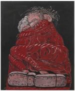 Yet the tone is nightmarish as often as it is droll. Painter ’s Forms II (1978) stars a grotesque mouth disgorging legs. Monument (1976), in the same pink and grey as the abstracts, presents a horrifying pile of shoe-clad legs, a spider formed from severed limbs. It could reference Gaston’s brother Nat, whose legs were crushed in the car accident, or the catalytic evil of the Holocaust. The artist was never explicit. But a sinister shadow lurked. Kettle (1978) turns the household device into a brooding steam monster, slouching across a blood-red landscape. These are the Black Paintings of their time. And Guston is a painter for ours.