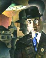 Modernity creeps gently into some of these pictures. Cubist elements are evident in Yuri Grigoriev's portrait of the great director Vsevolod Meyerhold and Yuri Annenkov's portrait of the photographer Miron Sherling. These paintings perhaps belong more to the post-revolutionary Soviet Union than to the Silver Age. Less successful is cartoonist Nikolai Radlov's painting of the Symbolist poet Mikhail Kuzmin. It looks like a caricature. The most striking of these post-Cubist portraits is Natan Altman's 1915 picture of Anna Akhmatova. In her blue dress and bright yellow shawl, the angular poet looks like an elegant Slavic Virginia Woolf.