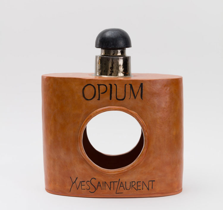 So began making this series in 2019, when she became fascinated by the influence of the snuff bottle on 20th-century perfume design. Both have their origins in the act of sniffing, taking something in through the nose, and one of So’s bottles is shaped like a nose. Another is shaped like a poppy, the raw material for opium. “I was thinking about fragrance and the reasons why people sniff the bottle or wear the fragrance is to transform their mental state. Early perfume bottle designers often referenced snuff bottles for their Asian themes: in the oriental design – each one is like a miniature sculpture – but also in the titles. I studied the archives and I noticed that perfume titles like to play on vice and deadly sins. There is ‘Poison’ and there are drug references like ‘Opium’ and ‘Addict’.” So points out other names on the ceramic sculptures – “Wars”, “Invasion”, “Colony” – and it is hard to believe that these were (and some still are) sold and consumed for pleasure. “For men, it is about dominance and violence, so the titles have a military, masculine sentiment; for the women, there are titles that suggest succumbing to something, being weak, or crazy or wild. The perfume-maker is trying to capture the essence of some emotion or some feeling in a fragrance, but it’s kind of uncomfortable and intangible.”