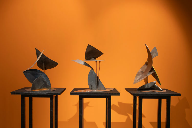Ro Robertson, Constructions I – III, 2025. Welded and riveted steel, oil paint and sea water. Installation view, The Ribs Begin to Rise, Northern Gallery for Contemporary Art, Sunderland, July 2025. Photo: Chris Davison.