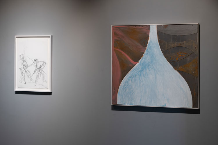 Left to right: Ro Robertson, Workers in Motion and She Moves Out, installation view, The Ribs Begin to Rise, Northern Gallery for Contemporary Art, Sunderland, July 2025. Photo: Chris Davison.